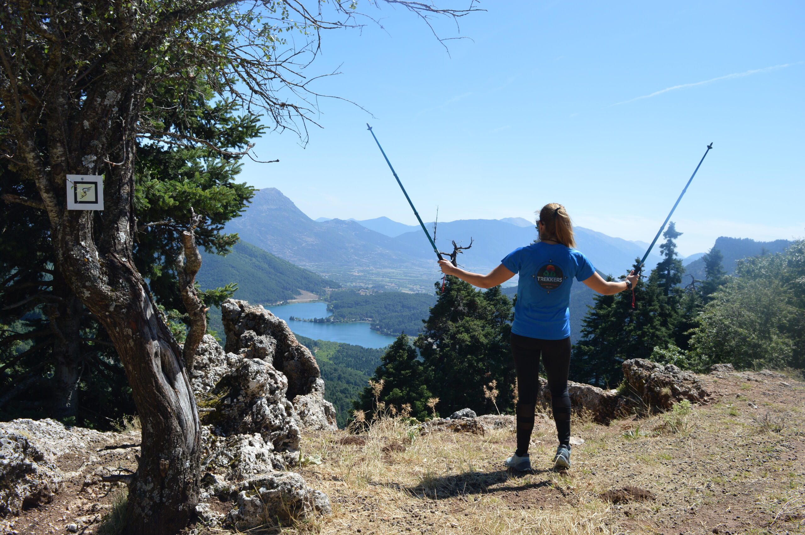 Η διαδρομή μας θα φτάσει μέχρι το Διάσελο του Κυνηγού, απ’ όπου θα απολαύσουμε την πανοραμική θέα της λίμνης, με φόντο την επιβλητική Ντουρντουβάνα και τα ορεινά δάση της Κορινθίας.