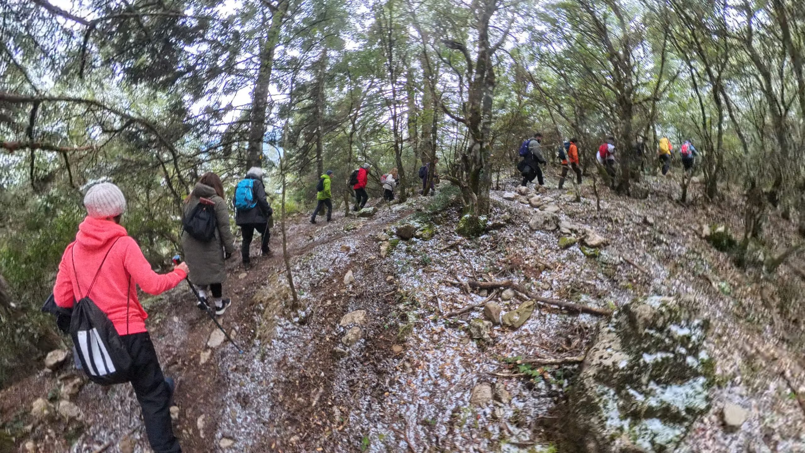Θα περπατήσουμε μέσα σε πυκνό ελατοδάσος, όπου η κεφαλληνιακή ελάτη και τα μαυρόπευκα συναντούν βελανιδιές και καστανιές, σε ένα σκηνικό που μυρίζει καθαρό αέρα και φρεσκάδα.