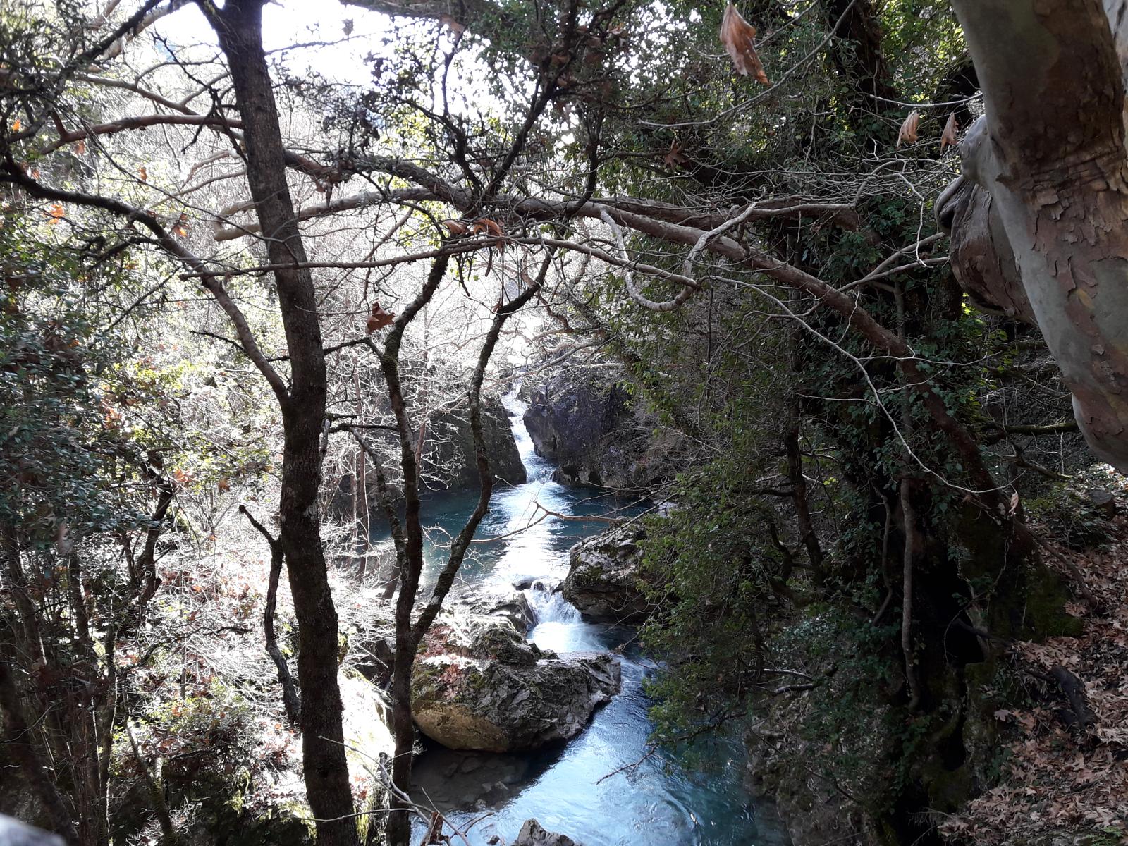 Καθώς προχωράμε, συναντάμε πηγές, το πέτρινο γεφύρι της Κερνίτσας, τη Μονή Κερνίτσας και το Ασκηταριό της Σφυρίδας. Μικρές στάσεις που θυμίζουν πως εδώ το τοπίο δεν είναι μόνο φυσικό, αλλά και βαθιά ανθρώπινο. Κάθε στροφή κρύβει λεπτομέρειες: βρύα που αγκαλιάζουν τις πέτρες, χειμωνιάτικες αποχρώσεις του πράσινου, ίχνη ζωής που περνούν αθόρυβα δίπλα μας.