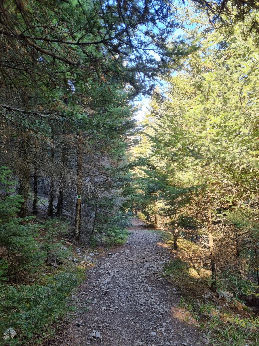 👉 να διασχίσουμε πυκνά δάση ελάτης και δρυός, με ήρεμες ανηφοροκατηφόρες, ξέφωτα και πανοραμικές θέες που ανοίγουν όσο προχωράμε.