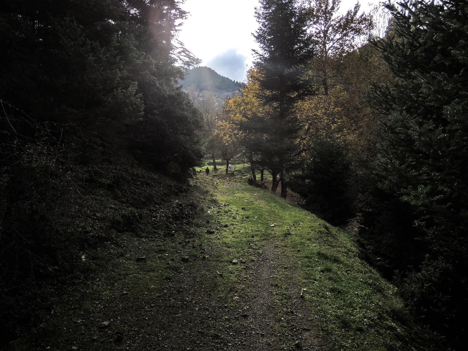 Το μονοπάτι κινείται ανάμεσα σε δάση ελάτης και δρυός, με ομαλές εναλλαγές ανηφόρας και κατηφόρας, μικρά ξέφωτα που ανοίγουν τη θέα και σημεία όπου ο ρυθμός πέφτει φυσικά. Ο χειμώνας είναι παρών χωρίς υπερβολές: καθαρός αέρας, υγρό χώμα, σιωπές και ήχοι που γεννιούνται μέσα από το δάσος.